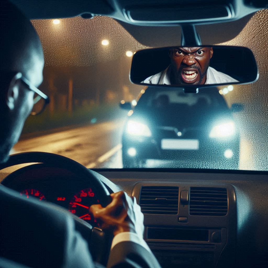 This happens very often on Nigerian roads for real and it could get very nasty.